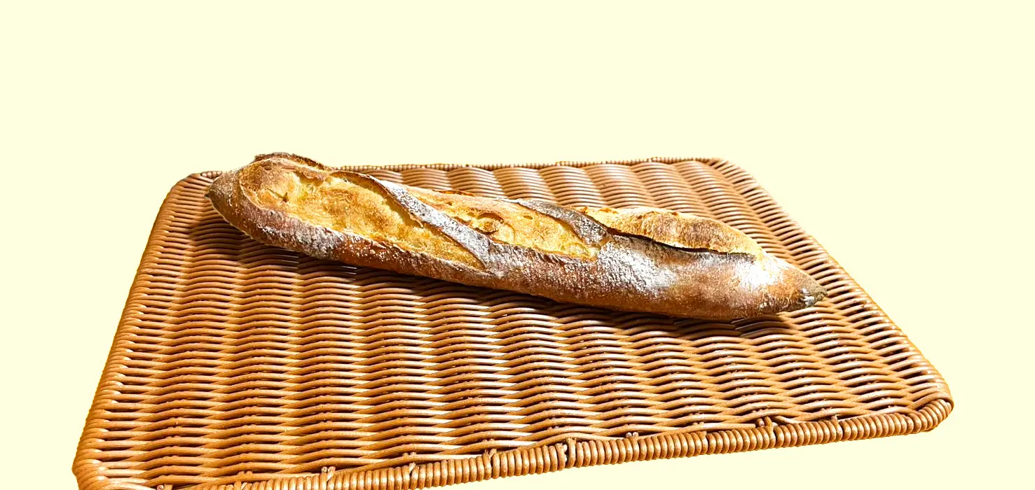 数種類の粉をブレンドし、低温で長時間発酵したバケット。粉の旨味と甘みを感じられる一品です。